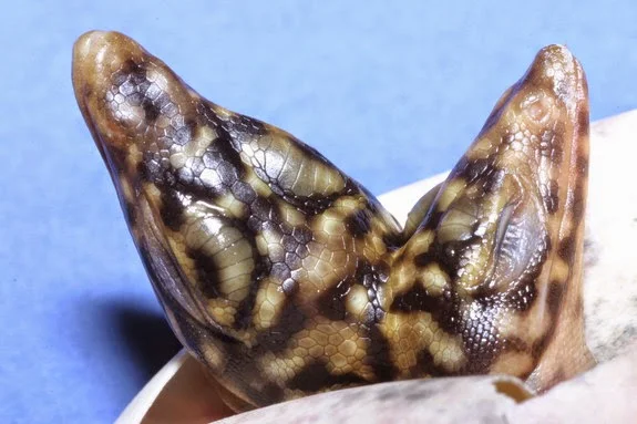 أغرب حالة نادرة.! لسحليتين ملتصقين الرأس..!! سبحان